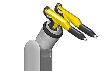 The new robot gun improves integration freedom to the robot head thanks to a flexible bracket. Nozzle extensions complement the robot gun allowing even the coating of difficult to reach areas.